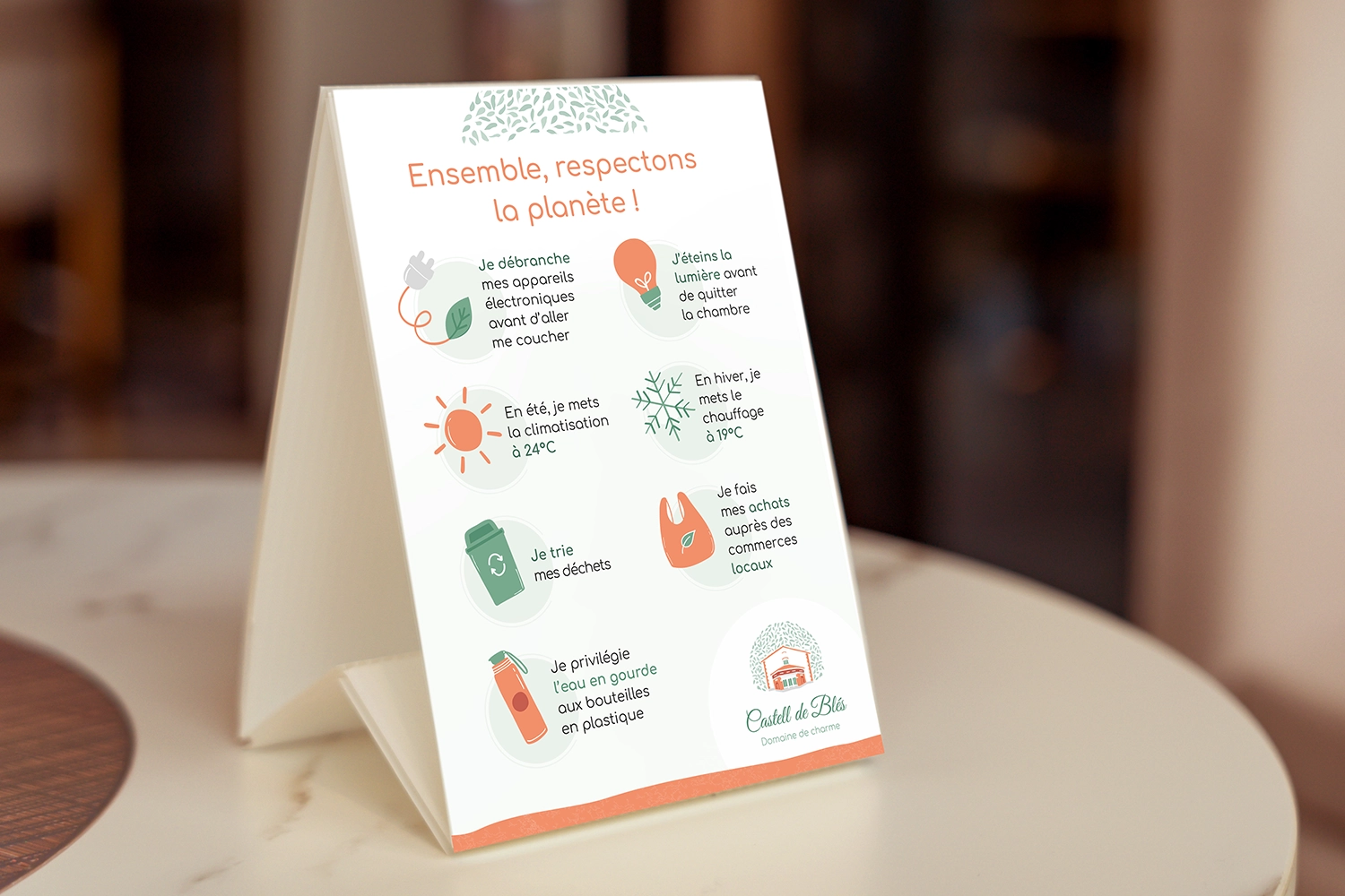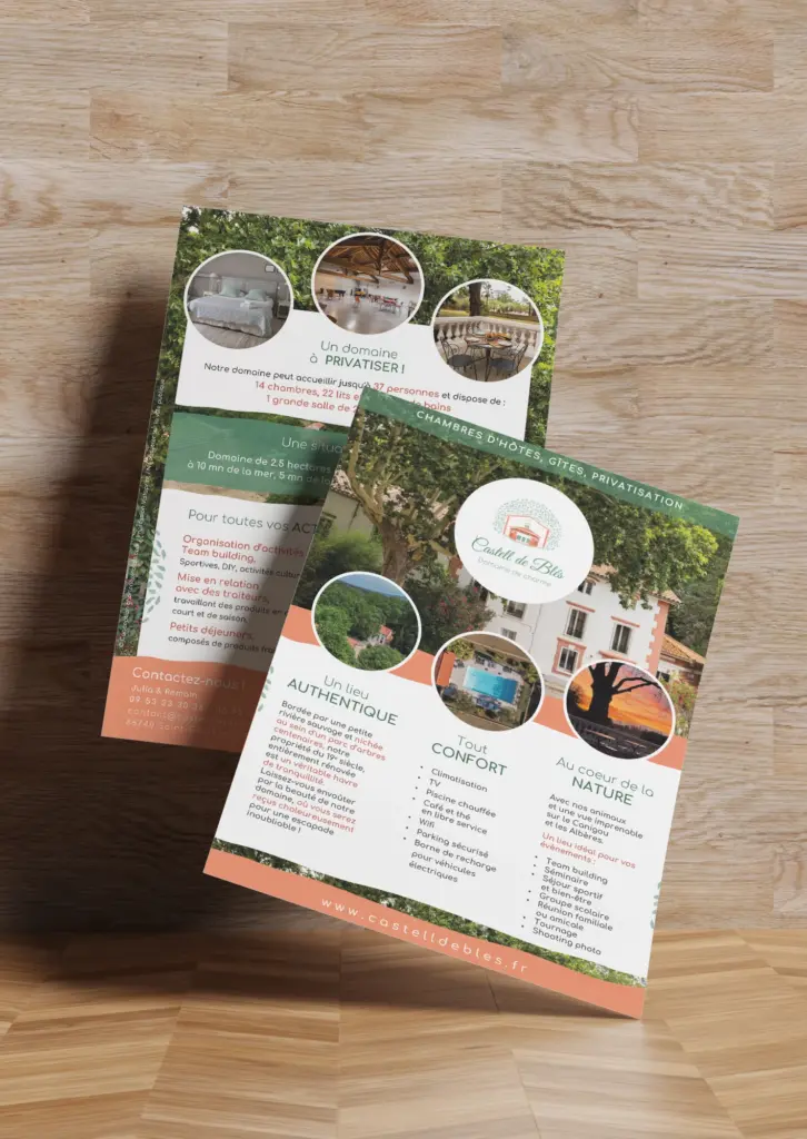 Agencement, typographie, illustration, photographie : je crée, cherche et harmonise chaque élément pour qu’il valorise votre entreprise, tout en intégrant les principes de l’éco-conception.